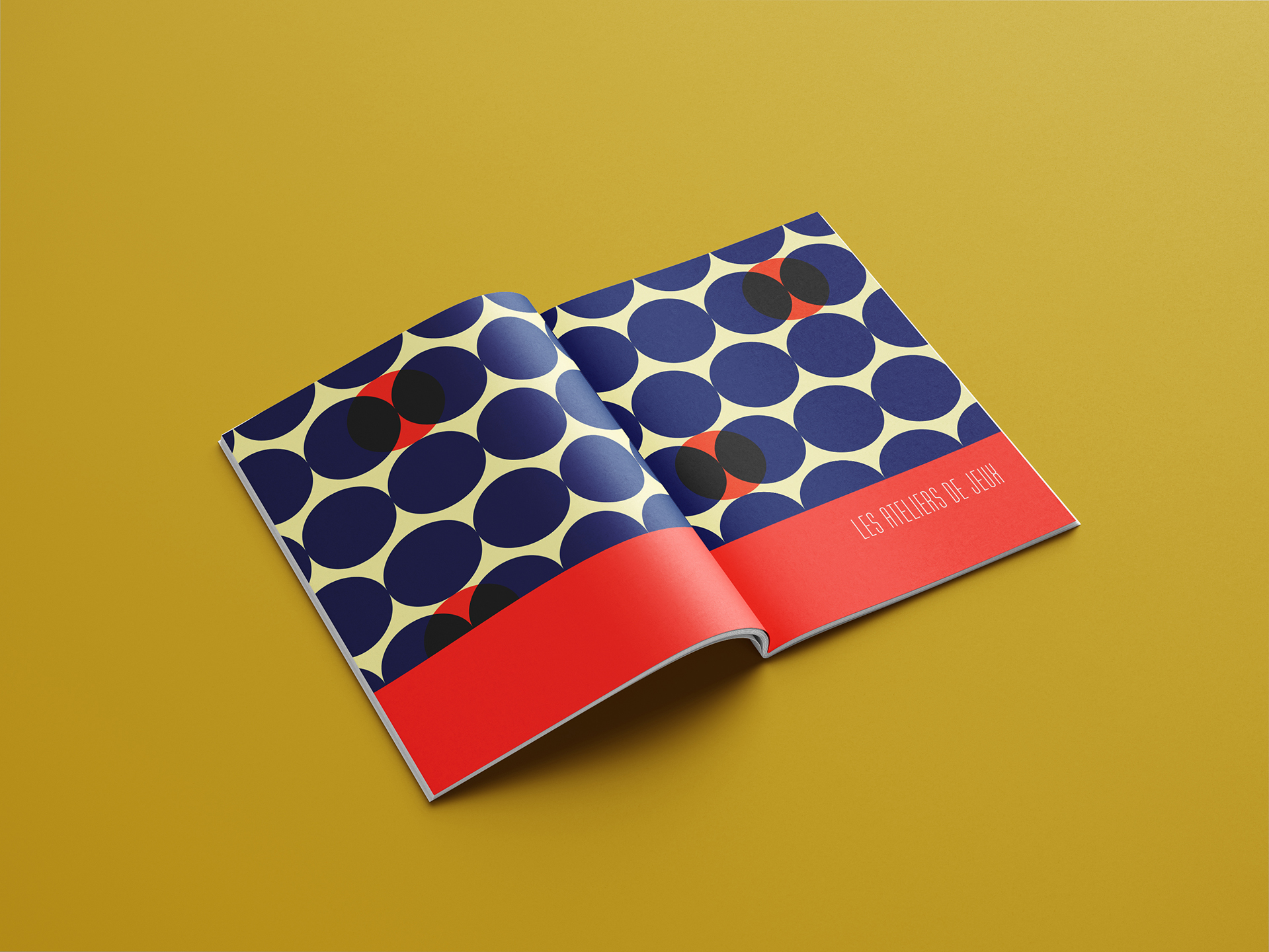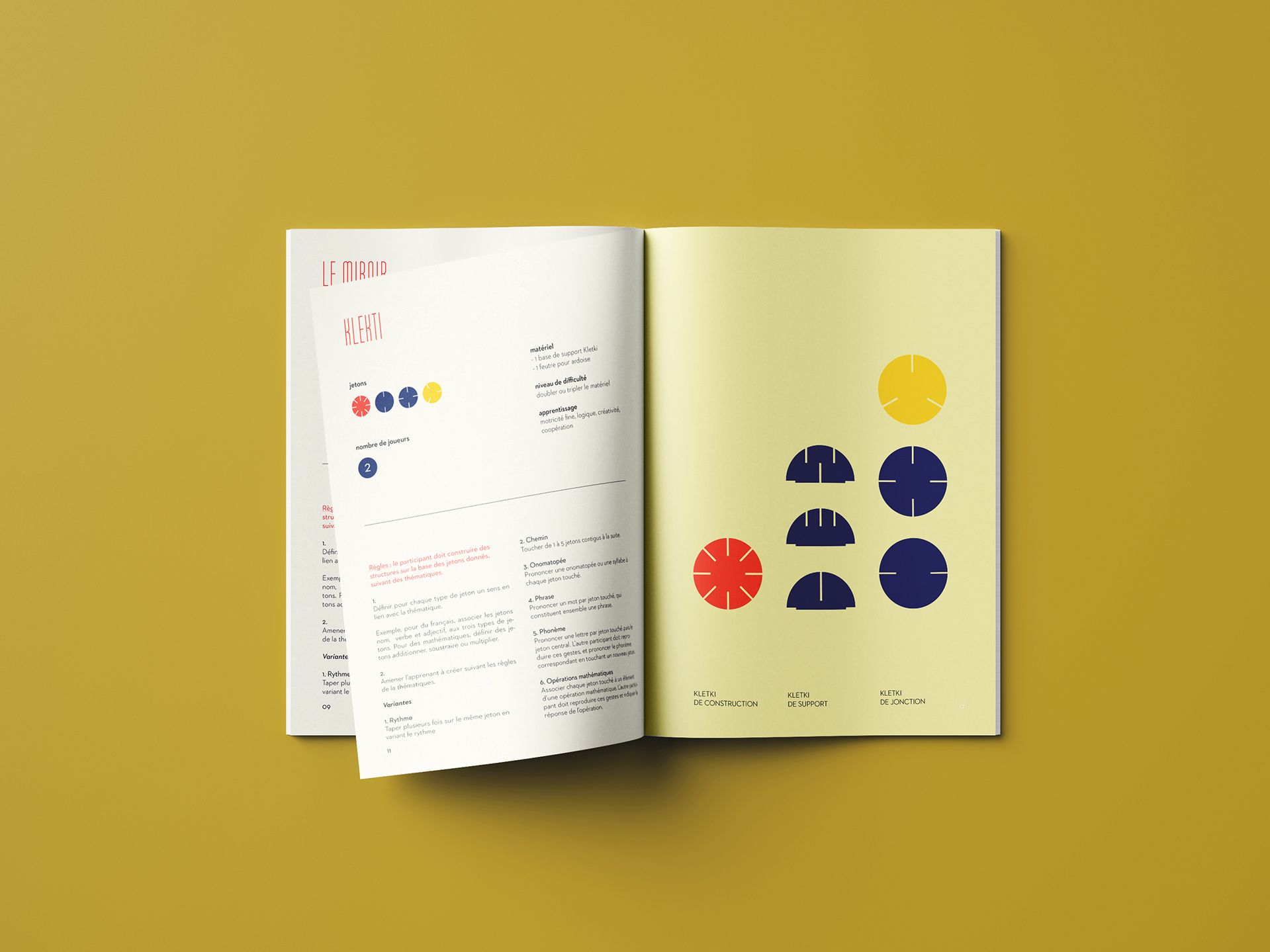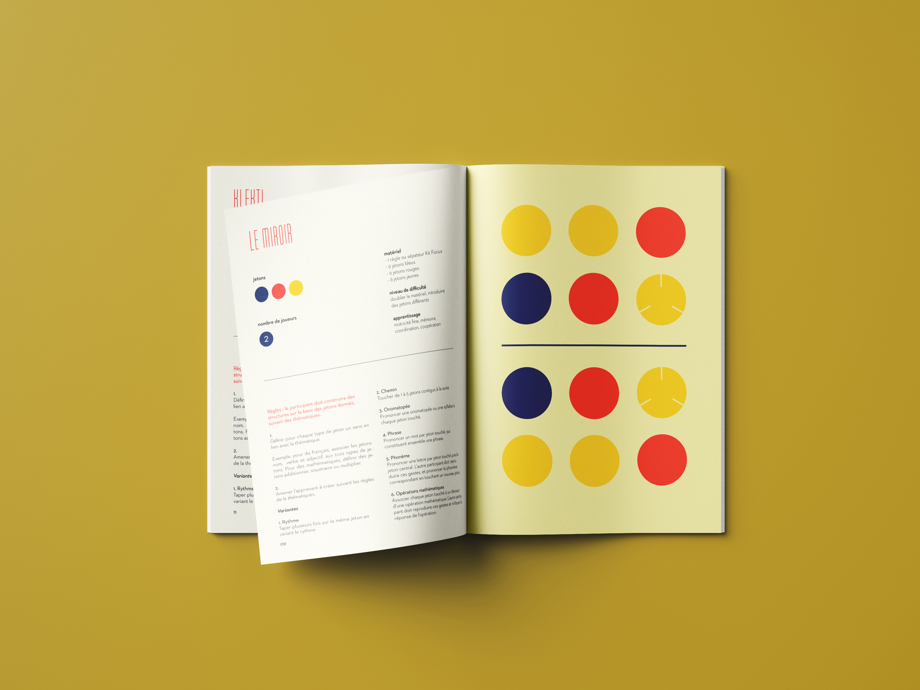 La brochure pédagogique et les cahier d’exercices ont permis de déployer le jeu graphique autour du jeton, tantôt utilisé en motif, tantôt en pictogramme.
