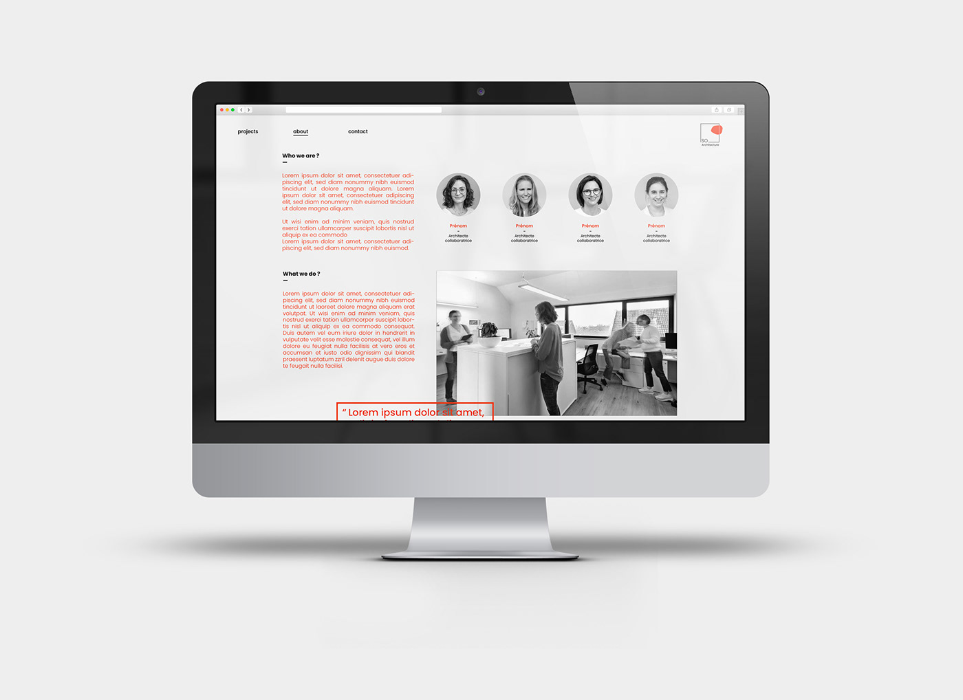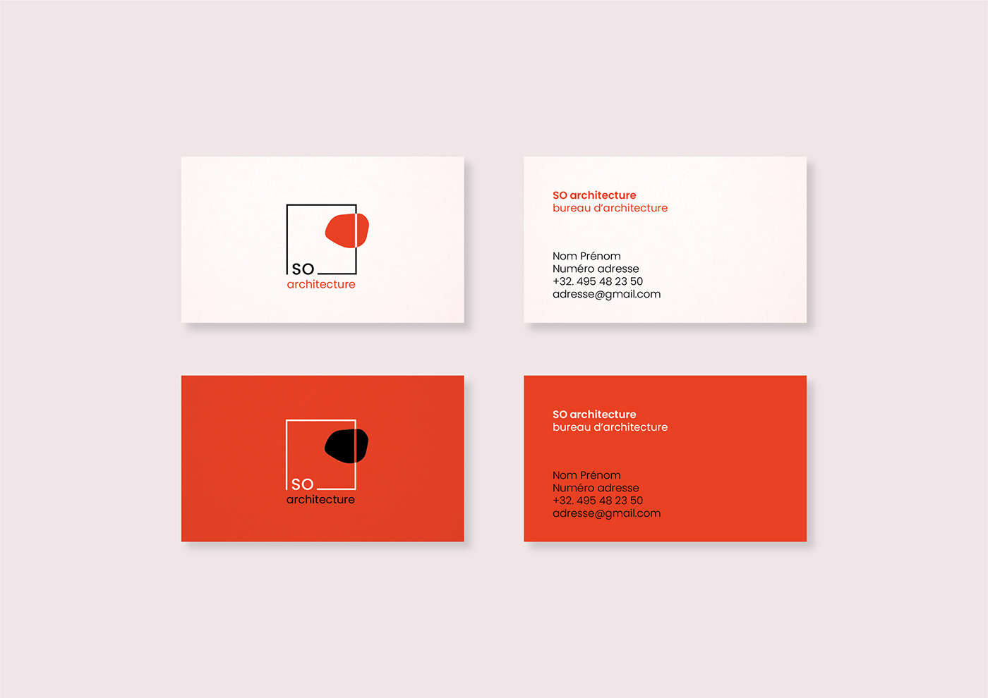 Identité visuelle pour l’agence So architecture, avec logo, carte de visite et maquette de site internet.